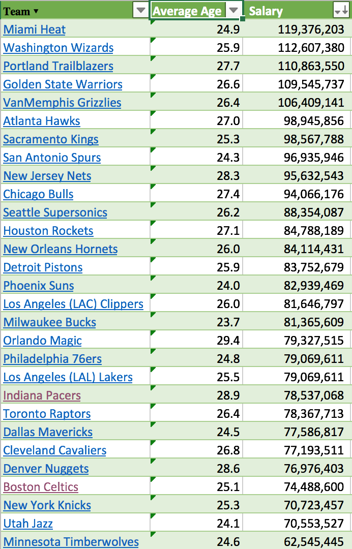 Let's take a quick look at the youngest teams in the NBA. Do young teams cost less? Not if you ask the Miami Heat....